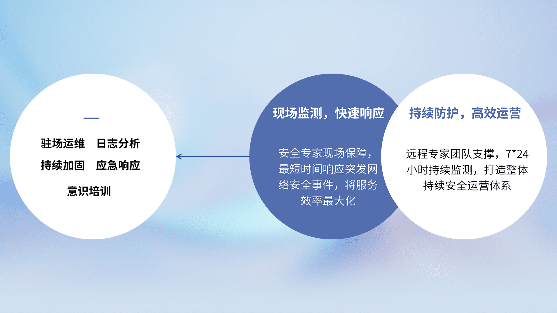 7X24小时持续监测安全事件,保持安全策略有效性,降低资产脆弱性风险,,,,精准拦截黑客攻击,,,减少被黑客利用的机会,,,第一时间遏制,,降低损失。。。。